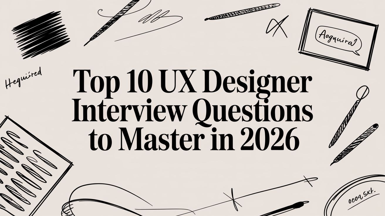 Navigating the UX design interview process requires more than just a standout portfolio. It demands a clear, confident articulation of your design process, problem-solving skills, and collaborative abilities. This guide is built to prepare you for precisely that. We've compiled a detailed collection of common, tricky, and insightful UX designer interview questions to help you demonstrate your true value as a designer, whether you're a junior just starting out or a senior lead shaping product strategy.